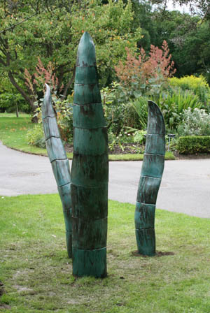 Grass2006200 cm*100cm*100cmSmoke fired ceramics and metal aramature Conceived and created for Sculpture in Context 2006 in the Botanic Gardens, Dublin, Ireland, this piece is concerned with the sinuousness and sensual shape of grasses and tall leaves. It was built in sections around a central metal core, in some ways mimicking the way plants and osmosis work to get nutrients and water to all parts of the plant. Conceived for and exhibited at Sculpture in Context 2006 in the Botanic Gardens, Dublin, Ireland. Purchased for permanent display by Millcove Gallery Sculpture Gardens.